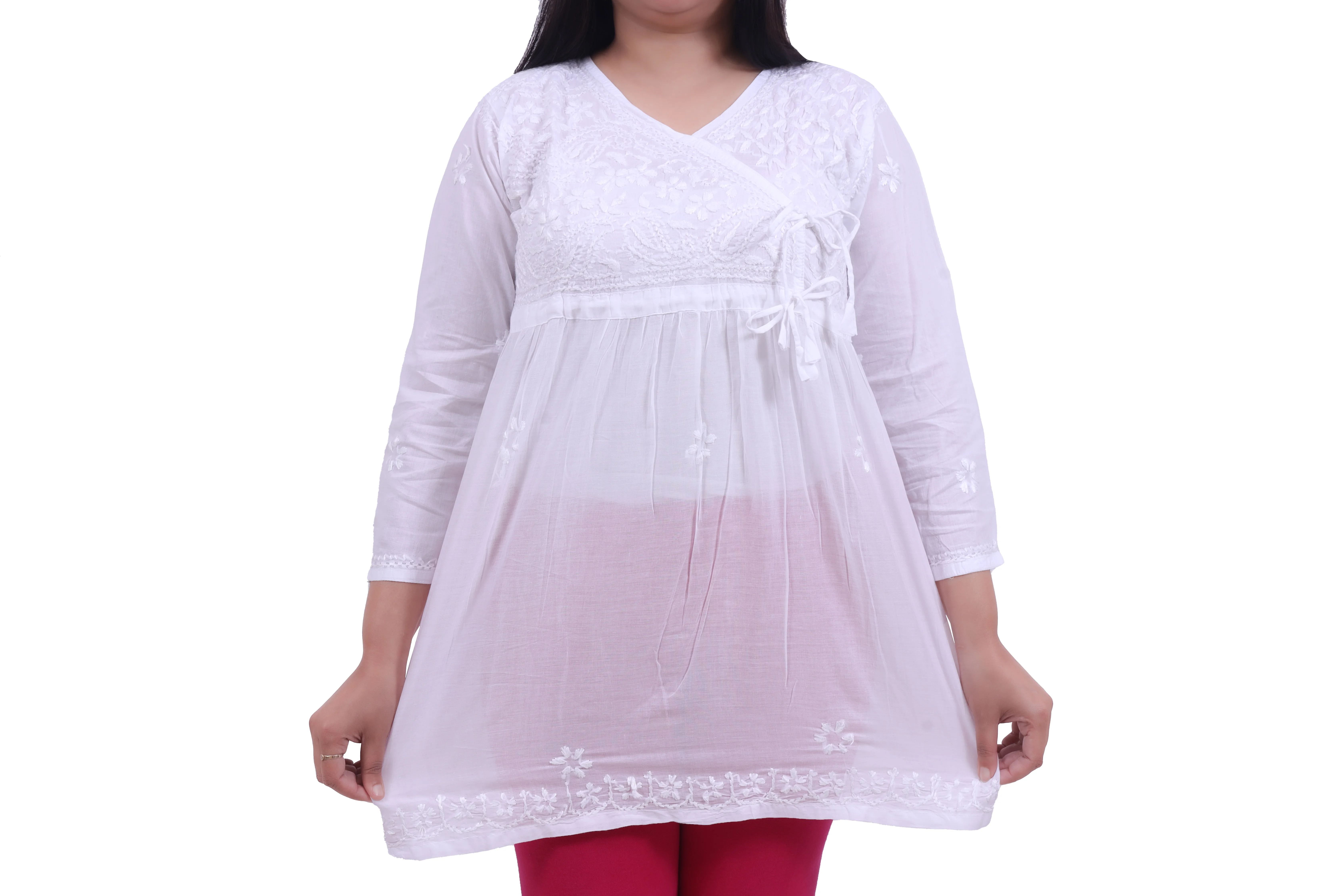 TABARRUK Hand Embroidered Lucknowi Chikankari short Cotton Kurti for Women