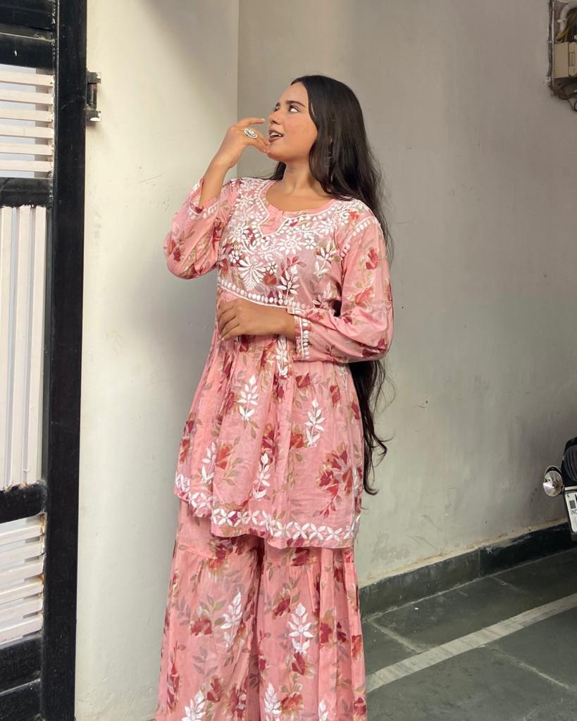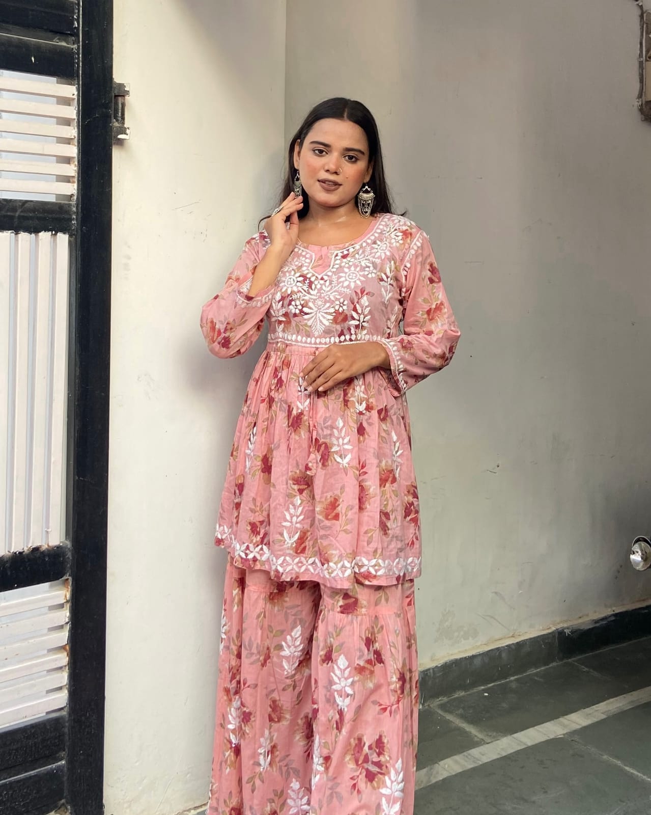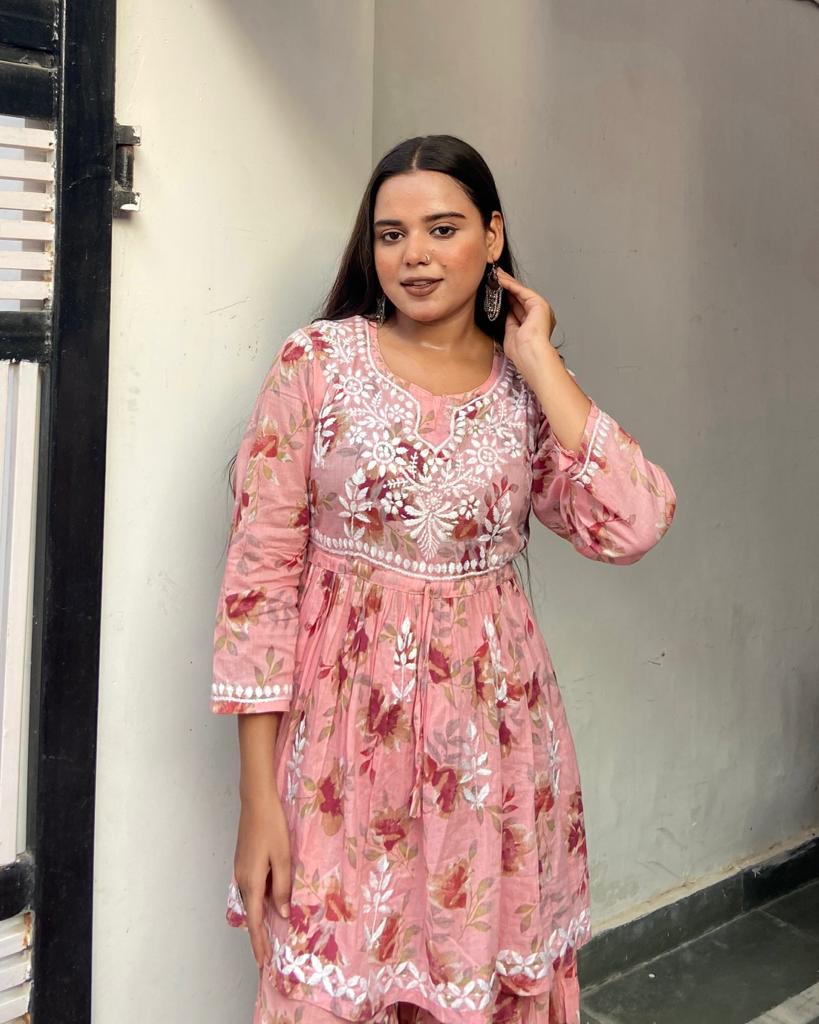 Explore the perfect addition to your daily ethnic wardrobe with our elegant women's kurta set. Indulge in the allure of this look, meticulously crafted from high-quality Cotton and elevated with the artistry of Chikankari. This intricate embroidery technique showcases floral motifs, displaying an exceptional attention to detail that imparts a delicate and fine-like quality to the fabric.The look is complete with stylish ankle-length straight pants that effortlessly complement the beautiful straight-long kurta. The regular fit and the straight design of the kurta, coupled with the round neck embroidery kurta, make it an ideal choice for any occasion.